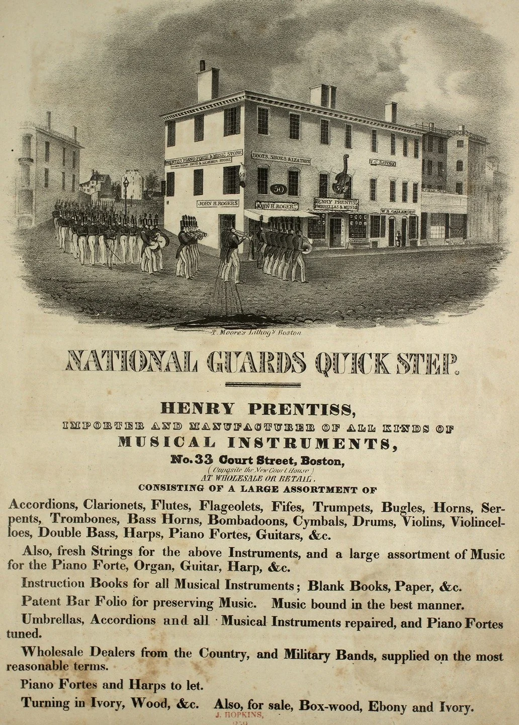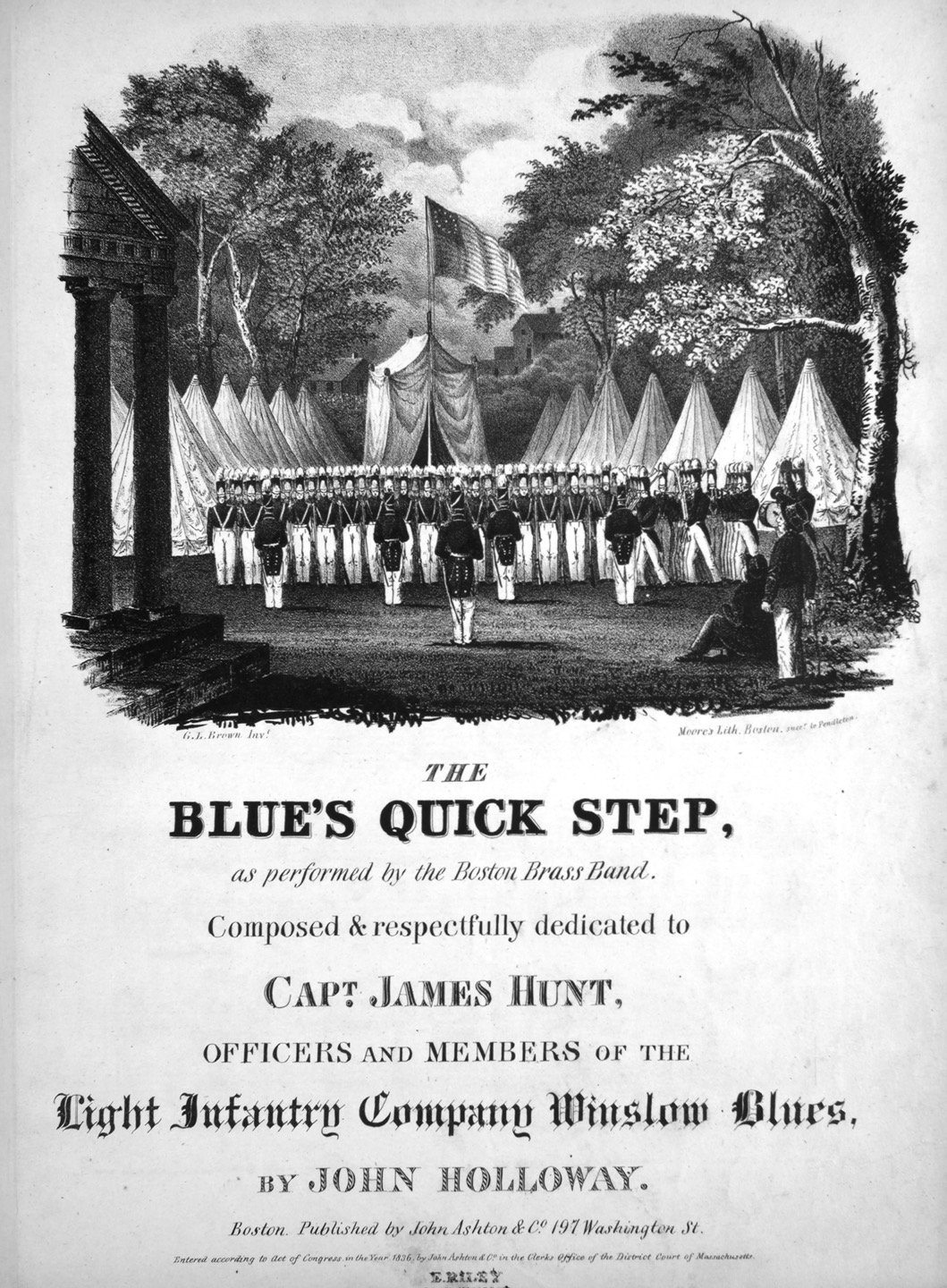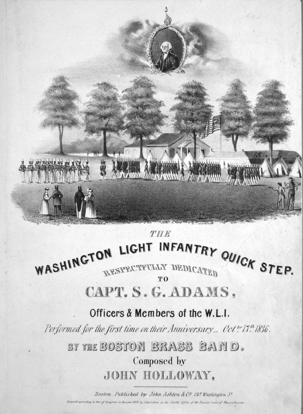 “As first performed by the Boston Brigade Band ON THE ANNIVERSARY OF THE BOSTON LIGHT INFANTRY, MAY 31 1837.”